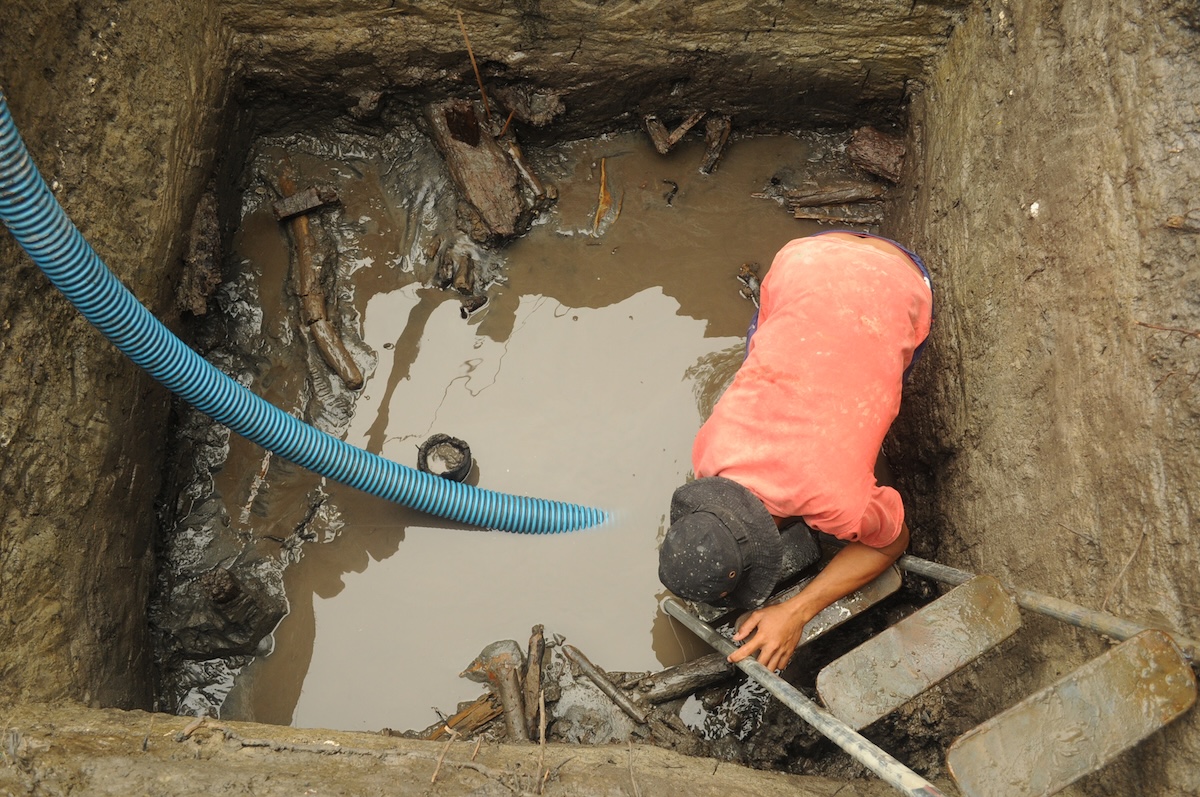 Excavations in Kota Cina faced the usual problem with this type of site in North Sumatra: privately owned land plots, often belonging to several owners. At Kota Cina, this land issue has become more acute over the past several years due to the large number of land transactions, usually with the goal of converting fallow or cultivated plots into building lots (tanah kaplingan), making these areas therefore inaccessible for archaeological excavations. In such a context, our program turned rapidly into a rescue excavation. Moreover, for the last 50 years, the site has supplied Medan antique dealers, an unwelcome competition for archaeologists. Another problem is related to the nature of the site. Kota Cina presently borders nipah palm-mangrove swamps with numerous waterways. As the site is situated just above sea level with a tidal water table approximately 0.60 m below the ground surface. The use of water pumps proved necessary in many digs.